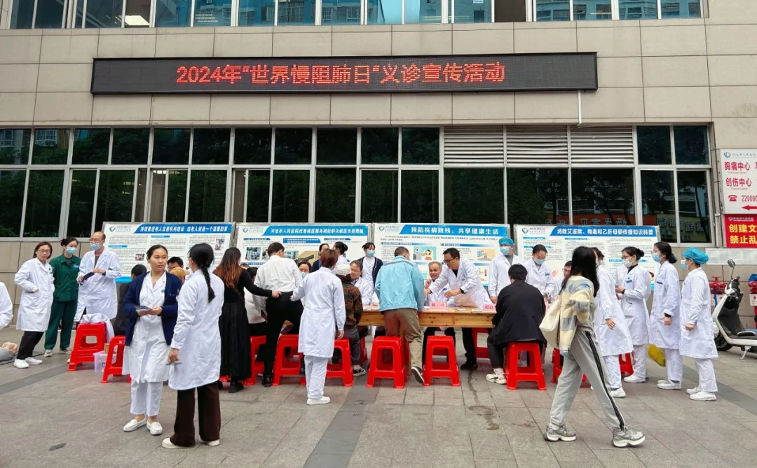 2024年11月20日是第11个“中国心梗救治日”,也是第23个“世界慢阻肺日”。为普及心血管疾病和慢性阻塞性肺疾病防治知识,提升居民健康素养,当日上午,广西医科大学第一附属医院河池医院·河池市人民医院心血管内科一、二病区,呼吸与危重症医学科、急诊科、心电诊断科等高年资医师们在总部院区门诊综合大楼前开展“11.20心梗救治日”和“世界慢阻肺日”义诊活动。
