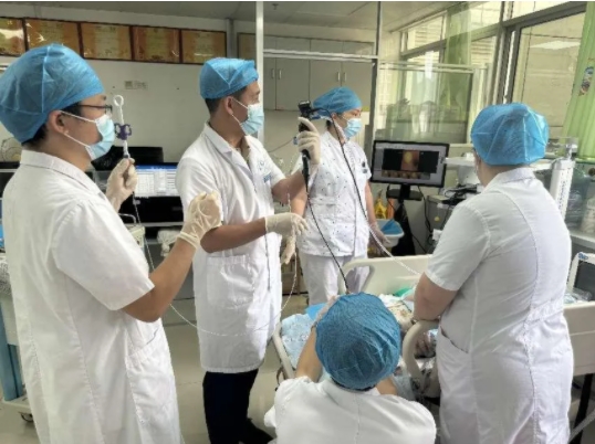 “婴幼儿气管异物取出术”相当于高难度的“抓娃娃”,由于患儿年龄小,支气管狭小,这对医生的临床经验、技术操作要求极高。儿内科和呼吸与危重症医学科再次讨论,决定将多种支气管镜器械进行拆装组合,由呼吸与危重症医学科主任韦庆亲自主刀,实施“气管异物取出术”。在多学科医护团队的通力协作下,成功将堵塞气道的真空拔罐器塑料塞取出,术后进行支气管肺泡灌洗术清理气道分泌物,整个手术过程非常顺利,短短十分多钟,使患儿转危为安。术后经抗感染治疗一周,患儿无发热、咳嗽,治愈出院。