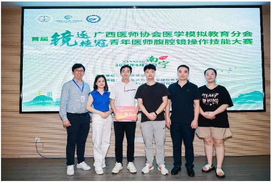 8月23日,在广西医师协会医学模拟教育分会首届“镜逐桂冠”青年医师腹腔镜操作技能大赛上,由广西医科大学第一附属医院河池医院•河池市人民医院胃肠外科主治医师韦合雷、妇科主治医师熊根、外科住培医师覃泳茗以及妇产科住培医师蓝铃玉组成的“微创智联队”,在本次大赛以优异表现荣获二等奖。
