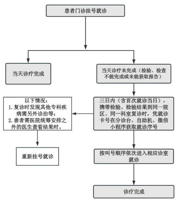 “一次挂号管三天”并不是可以不排队,为保证就诊秩序,复诊患者凭就诊卡号到分诊台、自助机或微信小程序获取就诊序号,按叫号秩序依次进入相应诊室就诊。