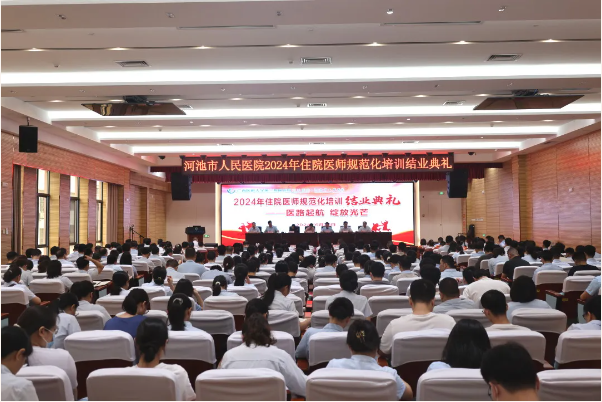 “医”路生花书写年华,薪火相传筑梦启航。6月25日下午,广西医科大学第一附属医院河池医院·河池市人民医院主题为“医路起航、绽放光芒”的2024年住院医师规范化培训结业典礼在教学综合楼5楼学术报告厅举行。河池市卫健委党组成员、副主任欧乃坚、科教考核科科长容海萍、院领导班子成员、中层干部、各专业基地主任、教学主任、教学秘书及骨干教师、2024年住培结业医师(含并轨专硕)参加典礼。典礼由医院副院长韦仁杰主持。