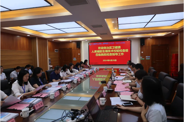 此次校验由自治区卫健委妇幼处副处长陆帅带队,区内人类辅助生殖技术专家一行12人,分别对生殖医学中心开展的夫精人工授精技术(AIH)、体外受精-胚胎移植技术(IVF-ET)及卵胞浆内单精子显微注射技术(ICSI)、生殖伦理等进行全面、细致、严格、认真的检查。医院领导及相关科室负责人陪同检查。