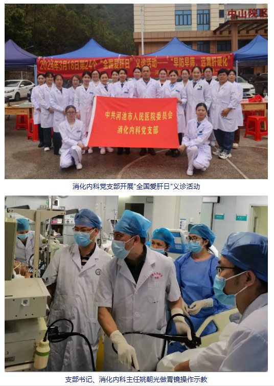 目前,消化内科党支部共有13名党员,其中高级职称6人,中级职称6人。该党支部通过“以服务尖兵先行推科普、以技术尖兵引领克难题、以文明尖兵助推好品牌”三大具体措施,将党建与业务深度融合,引领学科建设发展,消化内科获评广西医疗卫生重点培育学科、河池市医疗卫生重点学科和临床重点专科。开展多项医疗新技术填补河池市内技术空白,守护老百姓的胃肠健康。