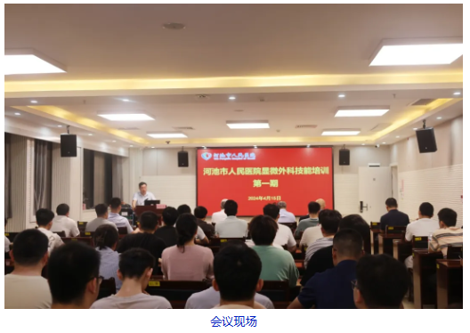 4月15日,河池市人民医院创伤手外科在教学综合楼5楼举办县域医疗卫生机构显微外科精准能力提升培训班开班仪式。培训班邀请广西医科大学第一附属医院沙轲教授、张波教授进行培训交流,河池市人民医院党委副书记、院长唐秀革出席培训班开班仪式,仪式由河池市人民医院副院长韦仁杰主持。河池市人民医院住培医师及各县域医疗机构骨干医师共100余人参加开班仪式。