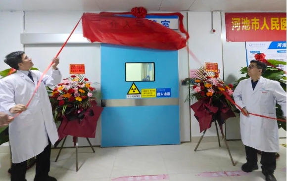 3月18日,河池市人民医院中山院区介入导管室启用仪式在中山院区综合楼一楼举行,医院领导班子成员、相关科室职能负责人、介入导管室及肿瘤科一病区医护人员参加仪式。