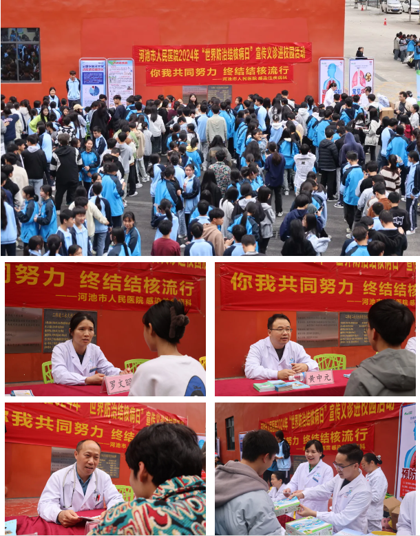 今年的3月24日是第29个“世界防治结核病日”。为加强校园结核病的防控工作,保障学生健康、维护校园稳定,3月22日下午,河池市人民医院组织感染性疾病科青年文明号、医院感染管理科等专家到河池市卫生学校开展主题为“你我共同努力,终结结核流行”的结核病防治宣传教育进校园活动。