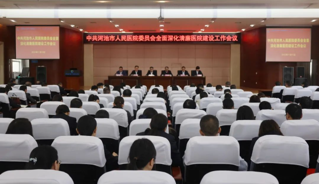 为全面落实2023年河池市全面深化清廉医院建设工作现场推进会安排部署,研究部署医药领域腐败问题集中整治下一阶段工作要点,推动清廉医院建设全面深化、见行见效,11月16日,河池市人民医院召开全面深化清廉医院建设暨医药领域腐败问题集中整治工作会议。医院领导班子成员、党委委员、纪委委员、各党支部委员、全院中层干部和重点科室全体职工参加会议。
