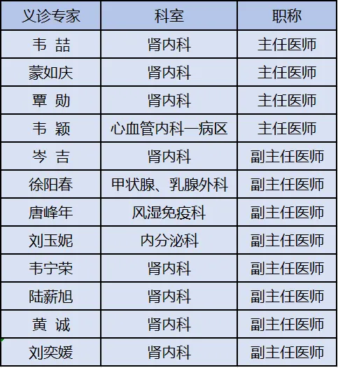 5.免费对肾脏及心血管、内分泌、痛风、甲状腺相关疾病患者诊治,接受患者咨询。