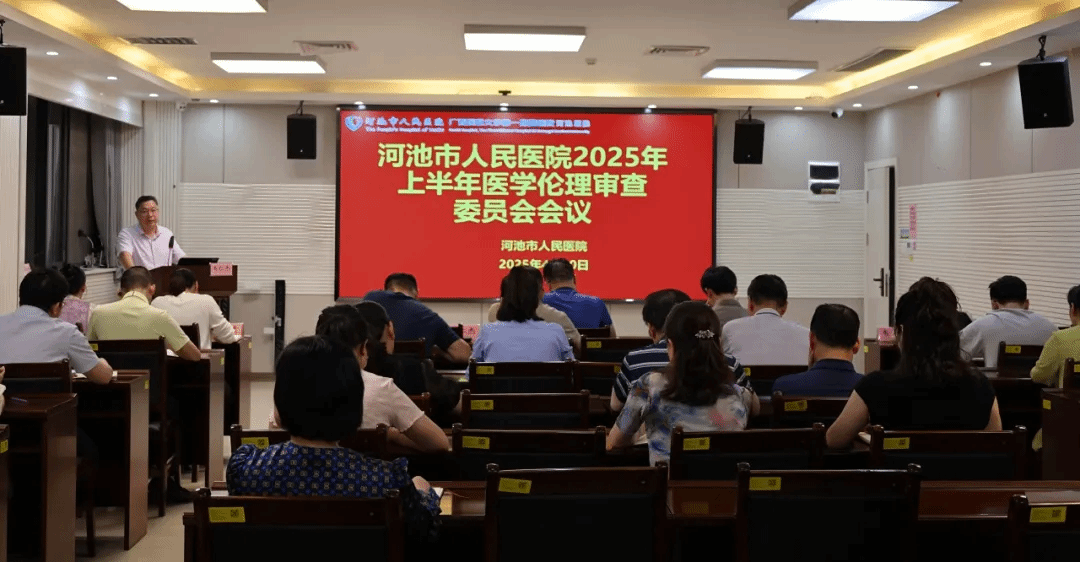 4月30日下午,广西医科大学第一附属医院河池医院·河池市人民医院召开2025年上半年医学伦理审查委员会会议。培训邀请了广西现代职业技术学院岑达林老师进行授课。医学伦理审查委员会及各分支委员会委员、秘书共计45人参会。