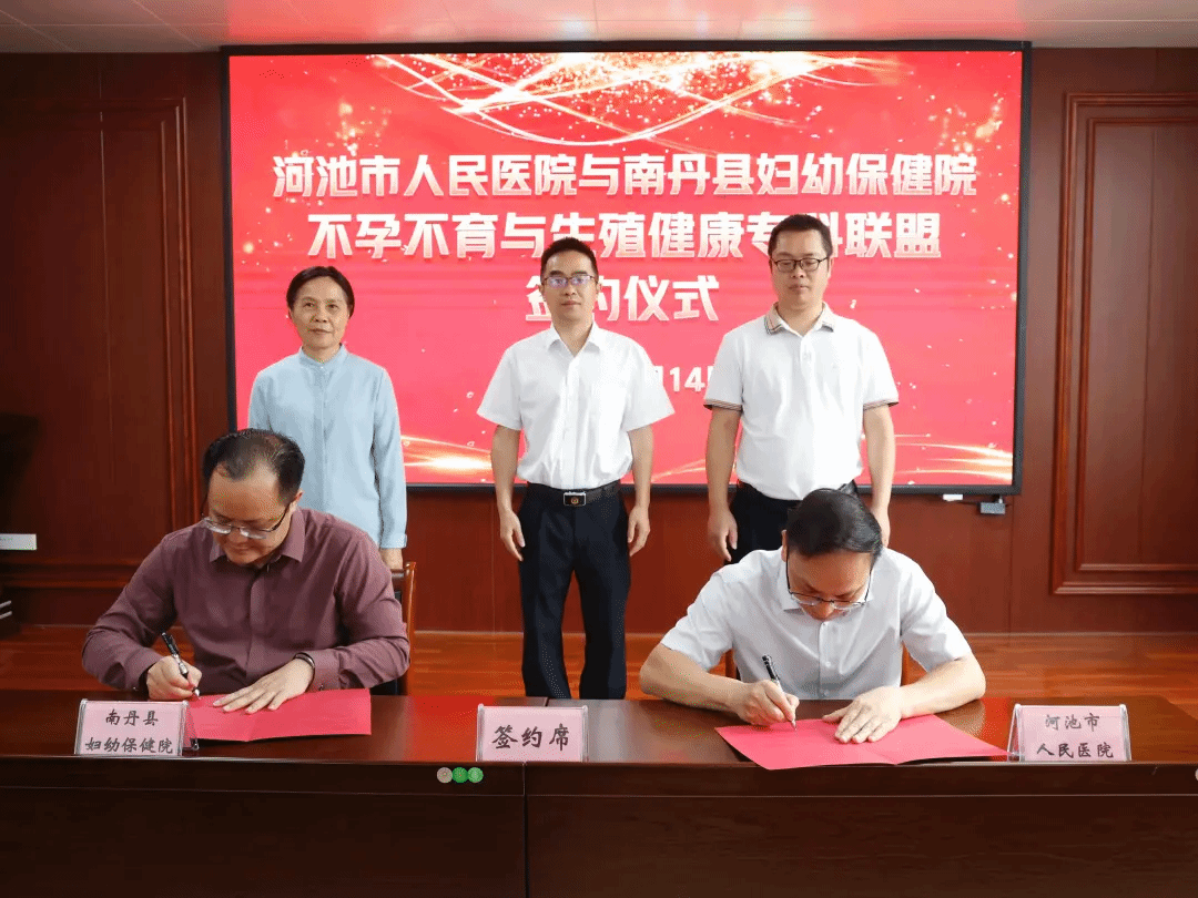 5月14日,广西医科大学第一附属医院河池医院·河池市人民医院与南丹县妇幼保健院不孕不育与生殖健康专科联盟签约授牌仪式在南丹县妇幼保健院举行。南丹县委常委、副县长唐文,河池市人民医院党委委员、副院长余乐周,南丹县卫生健康局党组成员、副局长文安学,南丹县妇幼保健院党总支书记、院长黎承润及双方医院相关人员代表出席活动。