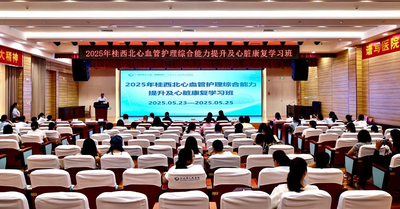 5月23日至25日,广西医科大学第一附属医院河池医院·河池市人民医院举办“2025年桂西北心血管护理综合能力提升及心脏康复学习班”。本次学习班以“聚焦前沿、共筑健康”为主题,吸引了来自广西区内外的200余名心血管护理与康复等相关专业代表参会。