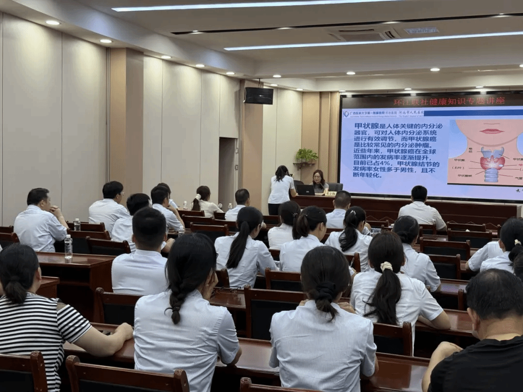 近日,河池市人民医院体检科医疗团队受邀到环江毛南族自治县农村信用合作联社开展健康专题知识讲座。活动通过专业医疗知识普及与实操指导,为职工搭建起健康管理的知识桥梁。