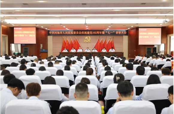 6月29日,河池市人民医院在门诊综合楼23楼会议室召开庆祝中国共产党成立102周年暨2023年“七一”表彰大会,旨在表彰先进、弘扬正气,激励全院党支部和全体党员干部继续奋发进取、创先争优。医院领导班子成员、党委委员、纪委委员、党支部委员、全院中层干部和全院党员参加会议。党委委员、副院长余乐周主持会议。