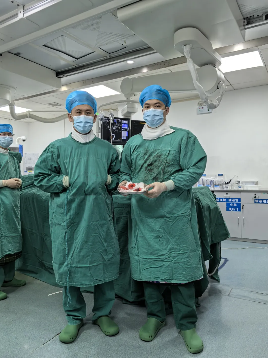 术中,手术团队在肺动脉造影的精准引导下,通过患者右股静脉置入导管,明确血栓分布,将特制导管送达肺动脉,成功吸出大量暗红色血栓,让原先堵塞的血管恢复畅通。术后,患者血氧饱和度即刻回升至正常水平,呼吸困难明显缓解,肺动脉压力下降。术后患者血氧饱和度和肺动脉压力均恢复到正常水平。