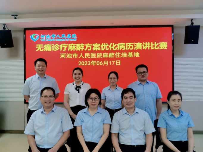 为进一步规范和优化手术室外无痛诊疗麻醉方案,促进青年医师临床经验交流,6月17日,河池市人民医院麻醉住院医师规范化培训基地举办无痛诊疗麻醉方案优化病例演讲比赛。比赛邀请了基地主任蓝英年主任医师,基地教学主任谭新梅副主任医师,基地住培指导老师吴建团副主任医师、李湘云副主任医师担任评委。