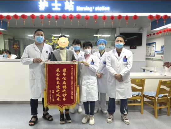科室团队的努力让这个曾陷入困境的人重新回到了幸福的轨道上,救治之情暖久长,这面锦旗也见证着医患间跨越3年的情谊。多年来,河池市人民医院在提升专业技术的基础上,不断加强人文关怀,医护团队在诊治过程中,做到规范治疗、用心聆听、客观疏导、真诚鼓励、长期随访,默默传递正能量,为医院文化锦上添花。