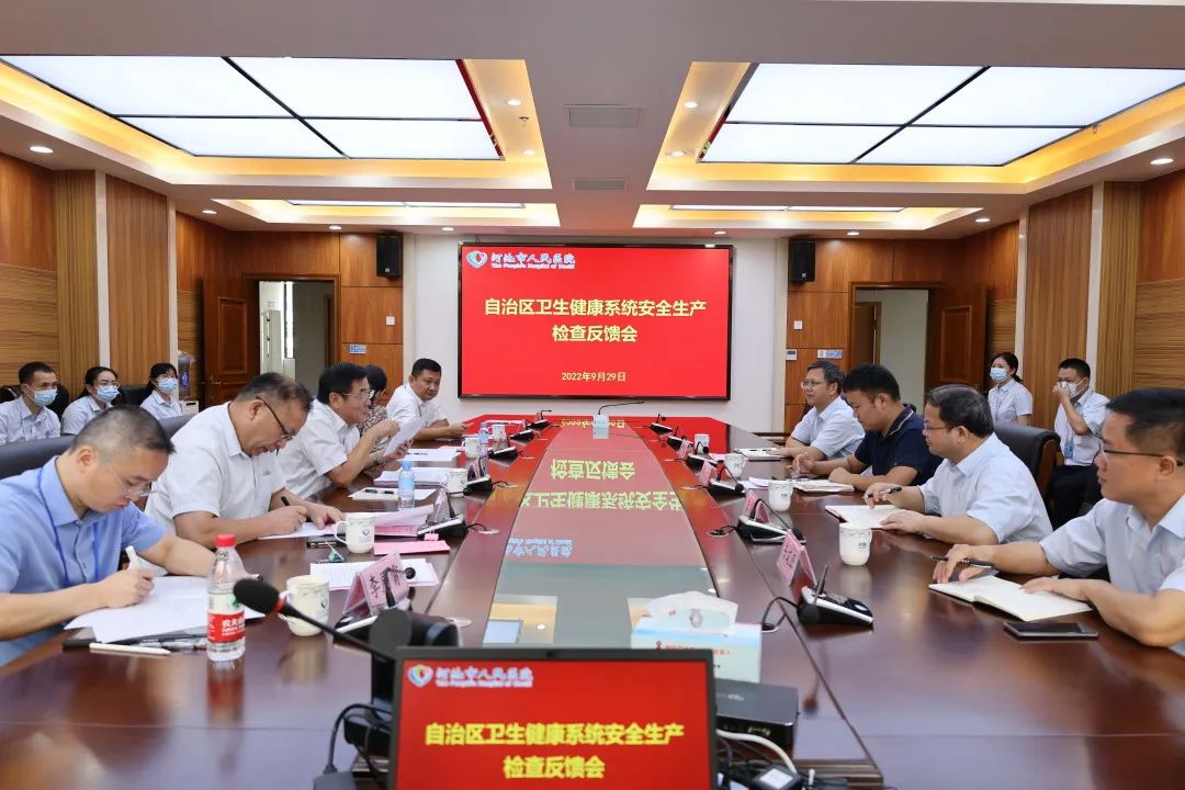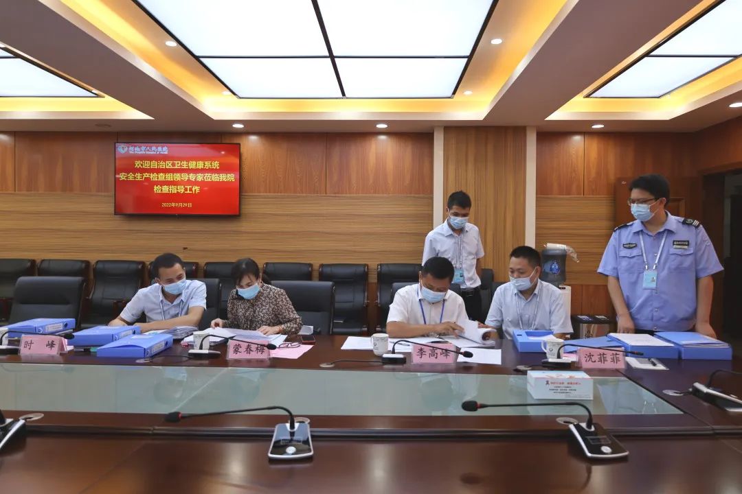 9月29日,自治区卫生健康委员会老龄处处长、二级巡视员时峰率检查组到河池市人民医院开展安全生产大检查。市卫健委副主任胡大伟陪同检查。