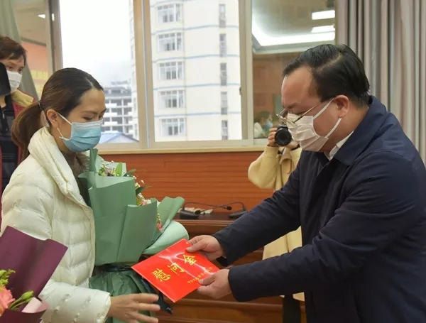 市委副书记、统战部部长唐标文在慰问中,对8位党外人士代表在突发疫情来临之际,舍小家、顾大家,不惧危险,义无反顾勇敢逆行的精神表示敬佩,感谢家属在后方把孩子、老人、家庭照顾好,他们才能在抗疫一线才能安心工作。