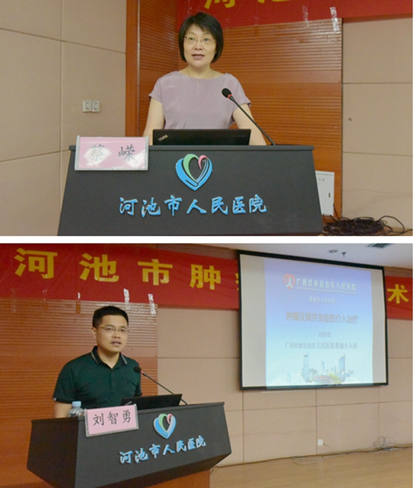 会上,上海交通大学附属瑞金医院蔡嵘教授和广西壮族自治区人民医院刘智勇教授就分别“2018妇科肿瘤治疗进展”和“肿瘤及其并发症的治疗”作了专题讲座。