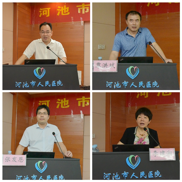 我院黄明棣副院长在致辞中指出,我院与全市10多家医疗机构组建了肿瘤专科联盟,大力推进了河池肿瘤治疗同质化服务体系进程。此外,近年来,我院大力开展并推广肿瘤多学科会诊,效果显著,病人获益良多,每一位肿瘤患者都得到最佳的治疗方案。希望通过此次交流与学习,能够进一步提升我市基层医疗机构肿瘤专科服务能力和管理水平。