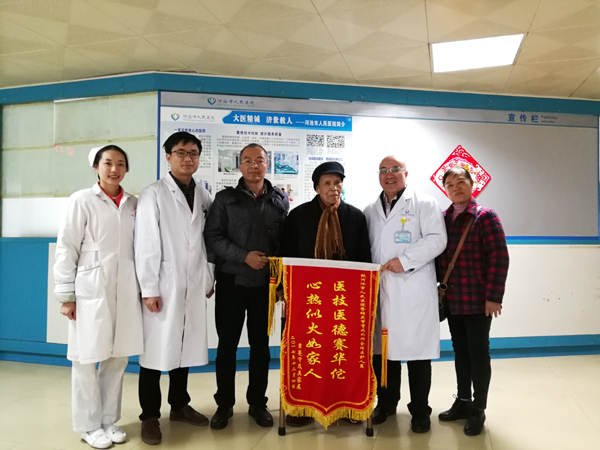 “一步、两步、三步”,一旁的儿女一边兴奋的数着,一边说,“爸爸年纪怎么大了,术后三天就能下地走路,真没想到”。而刘老也用颤抖的语言高兴的对医护人员及身边的儿女们说“我能站起来了,你们也不用那么辛苦了”。如今,刘老已出院,出院时还特地制作了锦旗送到医护人员手中表示感谢!“医技医德赛华佗,心热似火如家人”寥寥数语,道出了刘老及家人的心声,也给了医护人员莫大的鼓励!