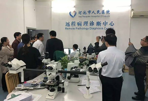 “建立远程病理诊断平台是我院医联体“一张远程会诊网络、三大辅助检查中心”支撑体系的一部分。我们将以河池市病理诊断中心、医学检验中心、医学影像中心为依托,按照河池肿瘤专科联盟建设规划,尽快在打通覆盖区域内主要医疗的远程病理诊断网络,同时派出专家直接指导基层建设病理科,并同步提供病理人才培养、技能培训、质量控制等综合服务,力争在互联网技术的带动下,尽快帮助基层医院解决病理诊断难题,让群众少跑腿,少花钱,看好病。”河池市人民医院院长梁涛表示。(文/ 伍勋)