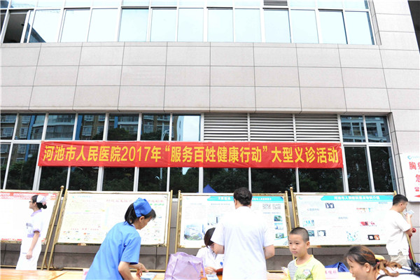 根据《自治区卫生计生委办公室关于开展广西2017年“服务百姓健康行动”全区大型义诊活动周的通知》要求,贯彻落实全区卫生与健康大会精神和精准扶贫的一系列重要决策部署,9月9日至9月15日,我院组织各学科医疗专家,分别来到金城江区、宜州区、南丹、天峨等地城市广场、乡镇街道开展义诊活动,为群众提供常见病、慢性病咨询诊治,医学常识、急救知识的宣传指导,免费测量血糖及血压等服务,赢得了群众一致好评。