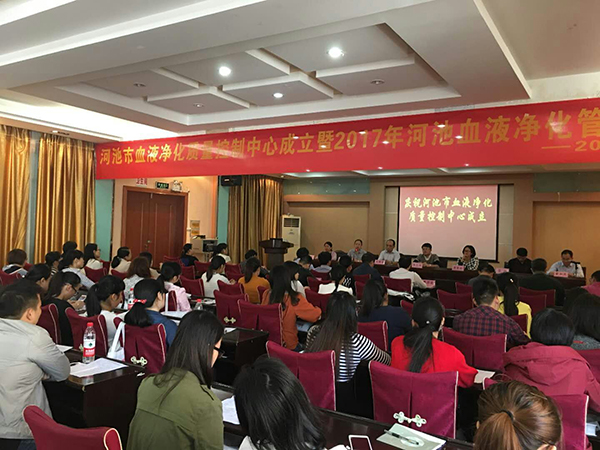 10月29日,河池市血液净化质量控制中心在市人民医院成立。市卫计委领导、自治区肾脏病学专家及相关医护人员共一百余人参加成立会议。