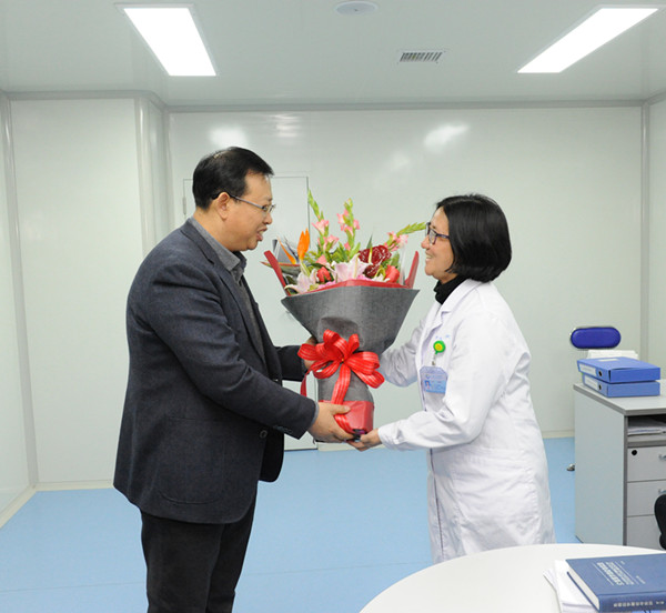 1月19日下午,自治区政协副主席李彬一行在市政协副主席韦凯钟等同志的陪同下,专程到我院看望优秀卫生技术人才代表蒋军松副院长,并向她致以新春的问候和美好的祝愿。