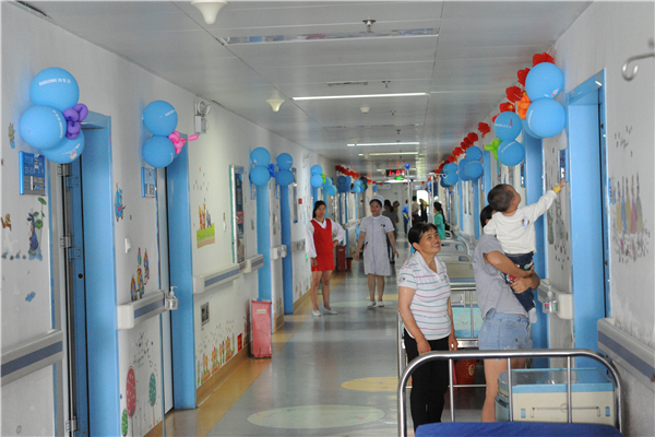 一大早,在韦艳姬护士长的带领下,儿内科医务人员就带着气球、彩带和小礼物来到科室,经过精心的布置,病房内外处处洋溢着节日的气氛。