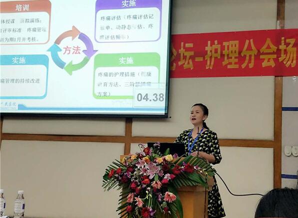 同时,黄娟娟护士长受邀担任护理分会场的主持人,她以论文《基于JCI标准的全髋关节置换术后患者疼痛管理》向全区护理同道展示了我院创伤手外科无痛关爱病房的开展成果,赢得热烈的掌声。