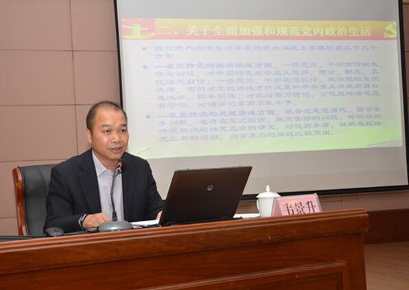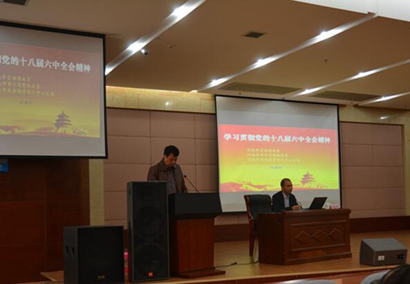 宣讲会上,韦景升主任围绕深刻认识和准确把握党的十八届六中全会的主要内容和重大意义、党的十八大以来全面从严治党取得的成效、加强党内监督的主要内容和基本要求等方面,通过真实事例,对党的十八届六中全会精神作了宣讲和解读。