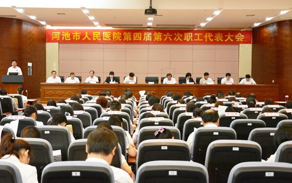 5月26日,我院第四届第六次职工代表大会在门诊综合大楼多功能报告厅隆重举行,121名正式代表、69名列席代表参加了大会。这次大会是在医院各项工作取得突出进展、医院发展面临重大机遇,迎接“三甲”复审工作进入冲刺环节等关键时刻召开的一次重要会议。大会充分发扬民主,集中解决各类问题,对奠定医院发展基调,实现医院健康发展,确保医院顺利通过三级甲等医院评审具有深远意义。