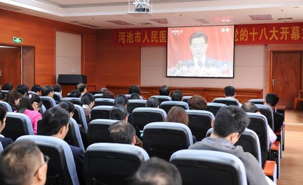 11月8日上午9时,举世瞩目的中国共产党第十八次全国代表大会在北京人民大会堂隆重召开。我院组织全体医务人员、中层干部以上领导干部观看盛会。