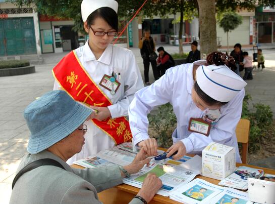 11月14日是第20个世界糖尿病日,我院中医内科组织了16名医护人员,在韦雄主任的带领下到市文化广场开展以“糖尿病教育与预防”为主题,口号为“控制糖尿病,刻不容缓”的糖尿病义诊和宣传活动。义诊当天共接待群众微量血糖检查412人,糖尿病咨询1200人,测血压660人,发放糖尿病宣传资料达2000多份,向群众宣传糖尿病的预防、诊断、治疗方法,帮助糖尿病患者正确掌握糖尿病相关知识,做到早发现早治疗,降低糖尿病并发症发生机率,提高生活质量。