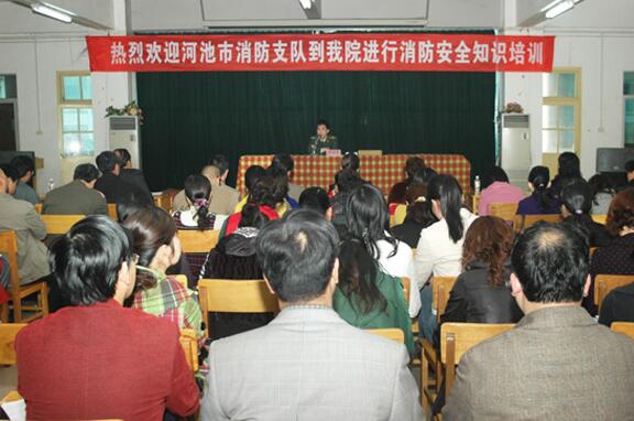 廖锡强处长结合河池地区发生的典型火灾实例,逐一对预防火灾的基本常识,火灾发生、发展的特点等方面进行了详细的讲解,传授了消除火灾隐患、防范火灾措施、初起火灾的扑救方法以及如何组织人员疏散、火场自救逃生等知识,指出实际生活中大家的消防误区,并为大家现场演示了正确使用消防工具的方法。培训结束后,党委副书记、纪委书记、副院长谭俊扬要求全院职工认真学习消防安全相关知识,熟练掌握火灾事故的预防、控制、扑救措施以及人员自救、救助技能,切实保障生命和财产安全。