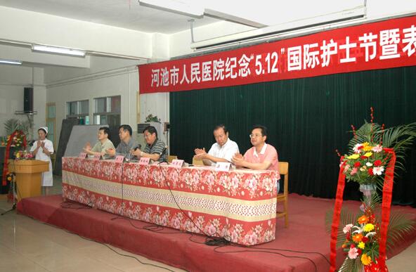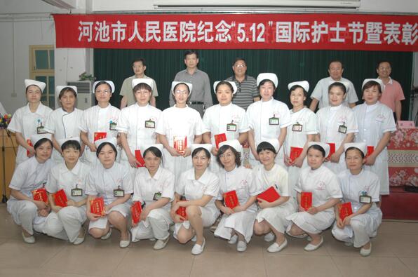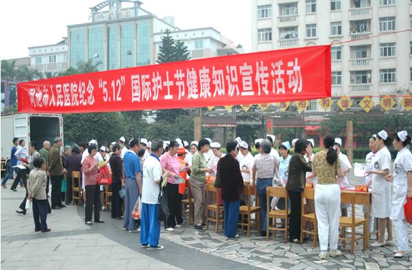 为隆重纪念“5.12” 国际护士节,大力弘扬伟大护理革命先驱者南丁格尔无私奉献的崇高精神,歌颂白衣天使为人类健康作出的杰出贡献,5月12日上午9时,河池市人民医院护理部组织17个临床科室、体检科、保健科、门诊部等科室护士长以及部分护理骨干共40人组成专家组,来到河池市花园广场开展以“关爱健康、与你同行”为主题的健康科普知识咨询和义诊活动,为1000多位群众进行义诊,并免费将5000多份健康教育科普资料发放到群众手中,向群众普及各种常见病、多发病的防治知识。