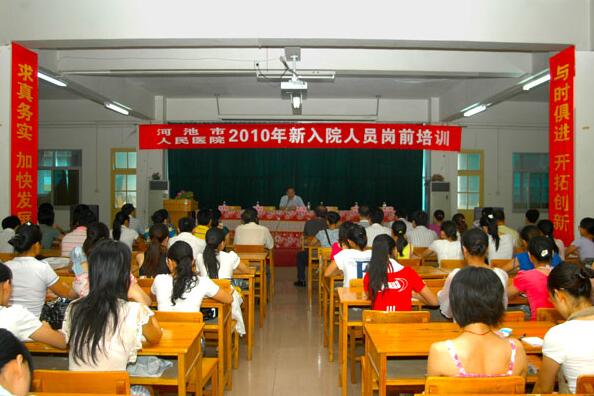 为使新入院人员尽快了解医院的基本情况及相关工作规定和要求,医院人事科、医务科、护理部等11行政职能科室的主要负责人分别对新入院人员进行了医院基本情况介绍、职业道德教育、医疗安全防范及病例书写、护士工作质量考评等11个项目的培训。