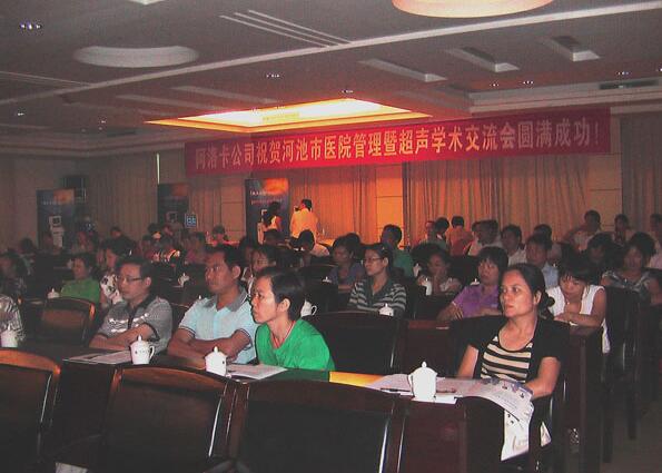 8月28日,由河池市人民医院主办的“2010年第二期医院管理暨超声学术交流会”在河池大酒店七楼会议厅如期举行。来自各县级医院的主管领导、超声科、功能科主任(负责人)、大型卫生院院长等共计119人参加了会议。