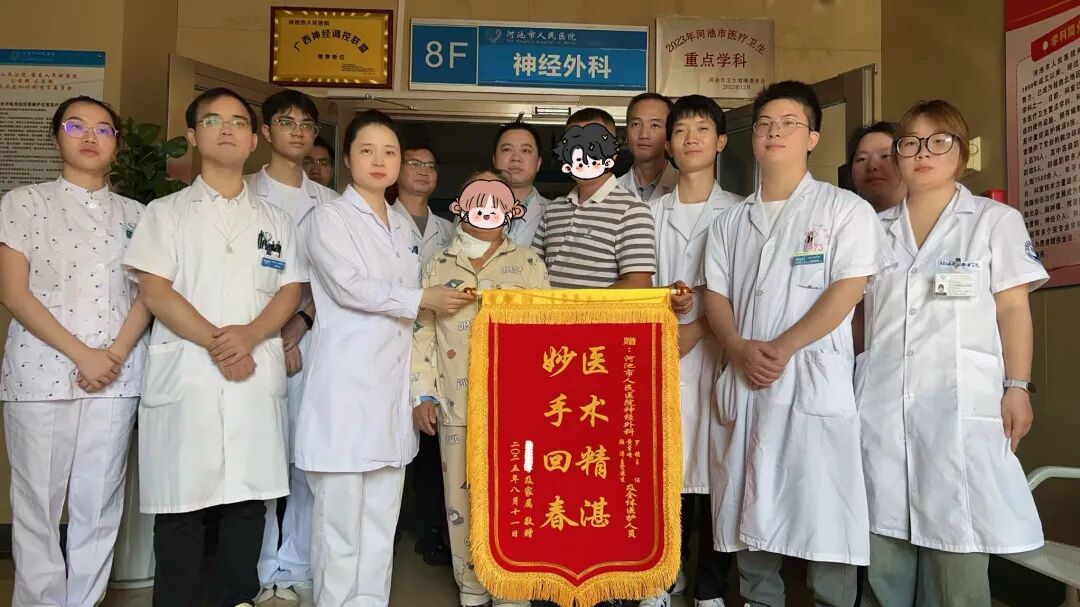 近日,广西医科大学第一附属医院河池医院·河池市人民医院神经外科团队再次凭借精湛医术,成功为一名65岁患者实施颈动脉内膜剥脱术,精准剥离右侧颈内动脉重度狭窄斑块,及时拆除“脑梗炸弹”。术后患者恢复良好,左侧肢体肌力明显提升,出院时专程送来锦旗,向医护团队表达“妙手回春,重获新生”的感激之情。