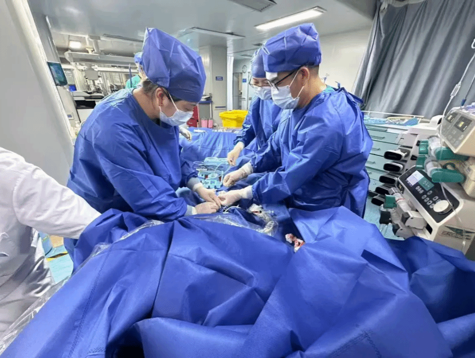 危急时刻,重症医学科一病区主任刘涉泱主任医师立即指导团队开展心肺复苏等紧急抢救,同时启动多学科协作机制。经重症医学科一病区体外膜肺氧合(ECMO)团队快速评估,患者符合ECMO心肺辅助治疗条件,唯有在ECMO支持下及时开通病变血管,才有机会挽救生命。