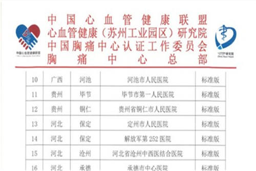根据中国胸痛中心认证工作委员会公告,河池市人民医院正式通过“中国胸痛中心”认证,成为广西第15个、桂西北地区唯一通过中国胸痛中心(标准版)认证的医疗机构。