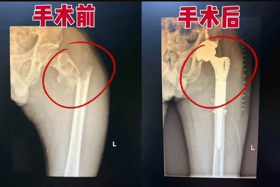 关节外科团队就黄大爷的情况讨论后认为,由于肿瘤侵蚀导致骨骼质量不佳,单纯内固定手术难以达到理想效果,内固定物易松动失效;而常规髋关节置换假体亦因正常骨结构遭破坏,无法实现可靠固定。“这好比在疏松的沙土上建房,地基不牢,房屋难稳。”团队形象地比喻道,“若沿用常规方式固定,不仅难以获得稳定支撑,还可能对本就脆弱的骨骼造成二次损伤,加剧患者痛苦。”