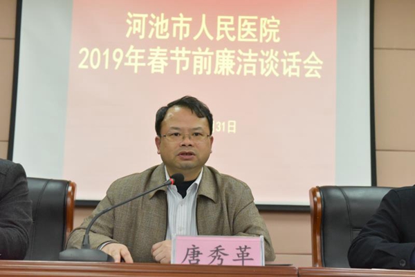 为贯彻落实全面从严治党主体责任,持之以恒落实中央八项规定精神,营造风清气正的节日氛围,1月31日,院党委组织班子成员、全体中层干部在5楼会议室召开春节前廉洁谈话会。