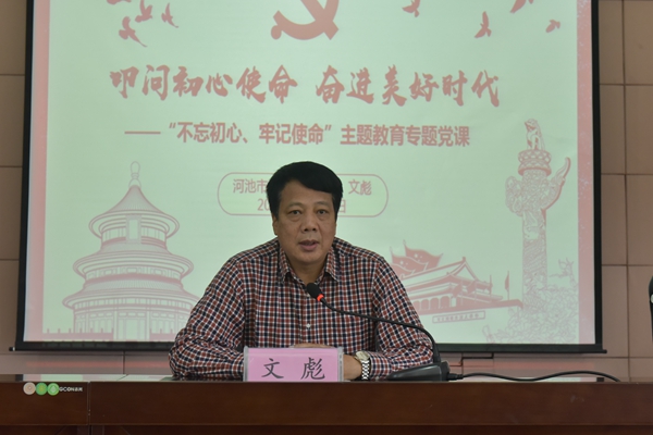 10月29日下午三点半,河池市卫健委副主任文彪莅临我院开展“不忘初心、牢记使命”主题教育专题党课。院领导班子、全体中层干部及全体党员约300人参加会议。