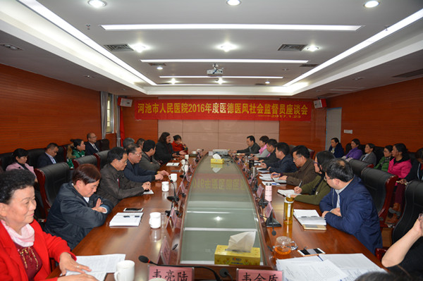 为进一步加强党风廉政建设和行风建设,充分发挥社会监督对医院工作的促进作用,提高医疗服务质量与服务水平,更好地为群众服务,1月23日下午,我院召开2016年度医德医风社会监督员座谈会,会议由党委副书记、纪委书记韦克波主持,医院行政职能科及部分临床医技科室负责人参加。