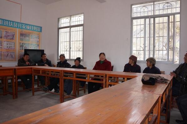 图为陆书记正在与兰包村班子、困难党员、困难群众座谈