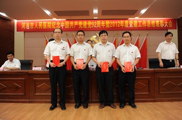 会上,医院党委副书记、纪委书记杨立倩宣读了《关于表彰2012年度先进党支部、优秀共产党员及党务工作者的决定》、医院庆祝中国共产党成立92周年党群“心连心”男女混合气排球比赛获奖名单,并通报了2012年医院党费的收缴、使用和管理情况。