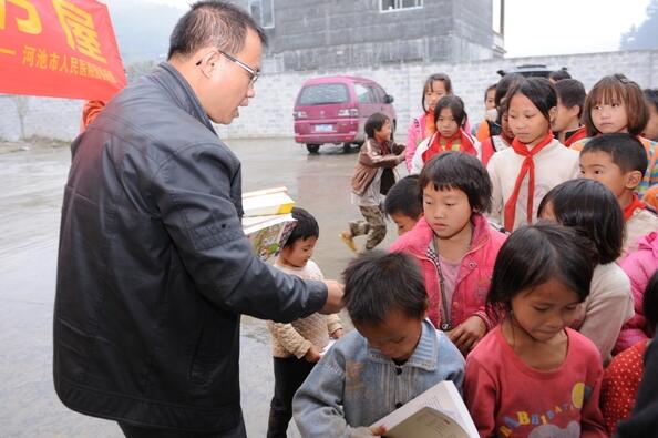 为积极响应团区委在全区开展“一个阅览室 一支小牙膏”活动的号召,关注乡村小学学生,解决贫困地区乡村小学的普遍存在的卫生条件差,图书缺乏的状况。近日,院团委组织将精心挑选的总价值5000元的书籍送到了我院新农村建设联系点-凤山县平乐瑶族自治乡兰包村小学学生们的小图书室里,为孩子们建立起了“梦想书屋”,帮助孩子们圆了“读书梦”。医院团委书记、信息科科长韦师,党政办副主任陆家承,急诊科自治区青年文明号号长兰小等参加了此次活动。