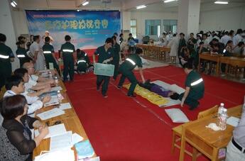 此次竞赛分为“生命至上·勇创一流”主题医师急救技能竞赛和“追求卓越·尽善尽美”主题护理操作技能竞赛。医师操作技能竞赛项目有:成人气管插管、基础生命支持、急救止血包扎、颈椎损伤固定与搬运。护理操作技能竞赛项目有:病人发生病情变化时的应急预案和徒手心肺复苏术。全院共有104名选手参加了比赛,参赛选手规范、娴熟的操作技术赢得了在场观众的阵阵掌声。通过紧张激烈的角逐,最后共决出集体一等奖2名、二等奖6名、三等奖10名和最佳组织奖10名;个人一等奖6名、二等奖10名、三等奖18名、优胜奖22名。